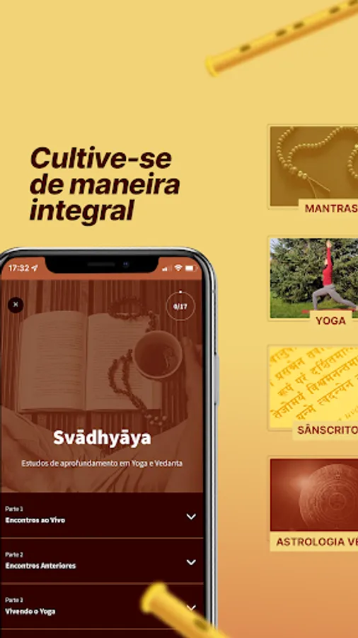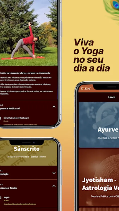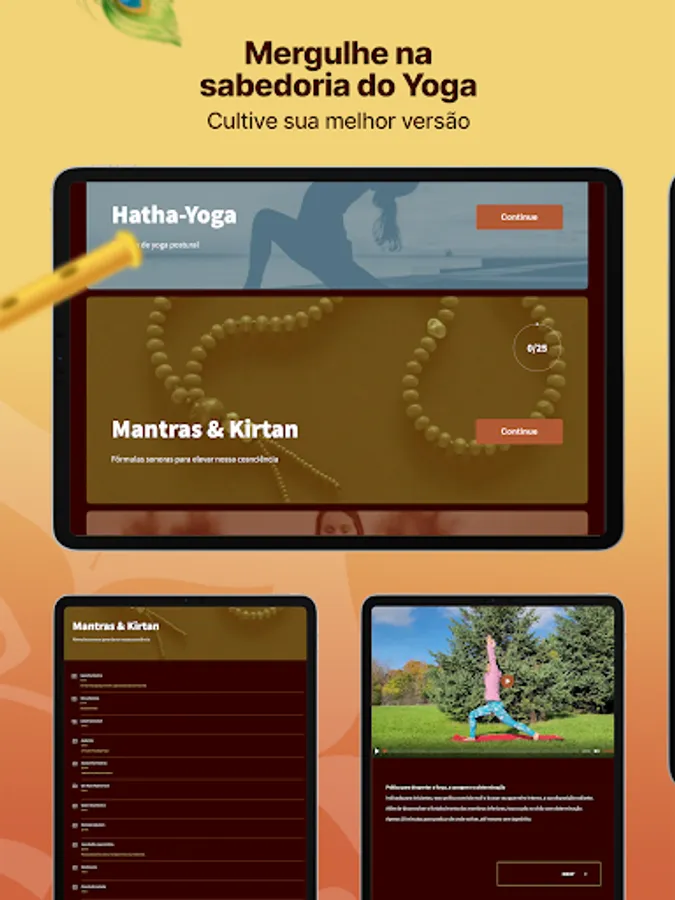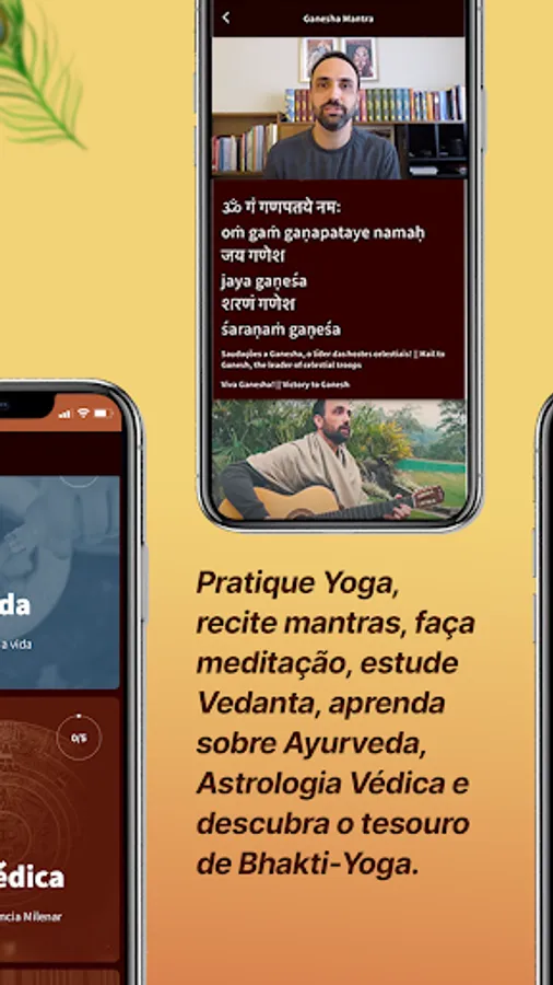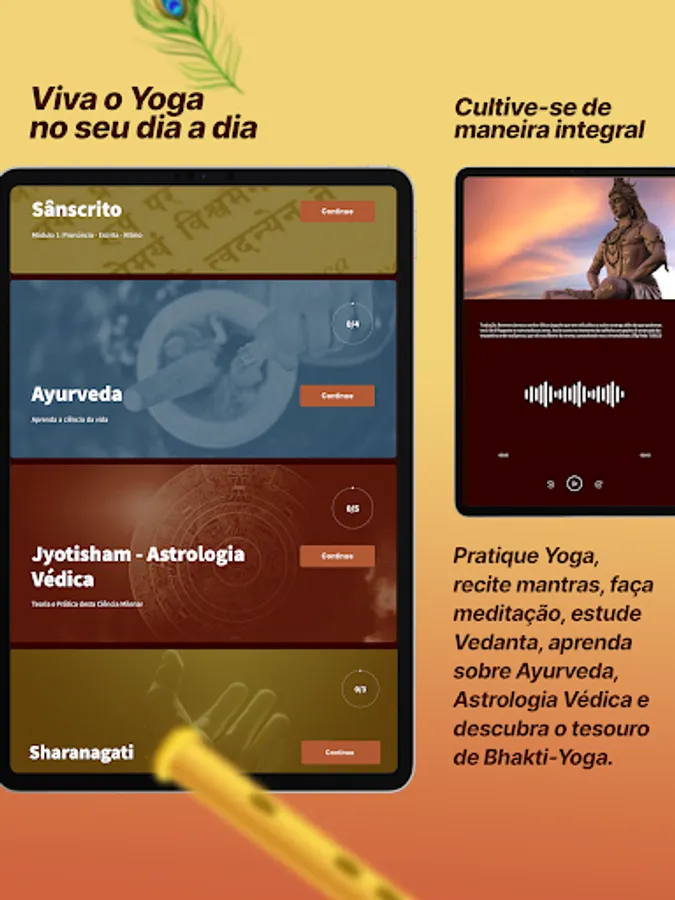Mas a proposta deste aplicativo vai muito além do Yoga Postural: o app oferece uma rica seleção de Mantras e séries de estudos em sânscrito, Ayurveda, Astrologia Védica, Yoga, Vedanta, bem como meditação e sessões de Yoga-Nidra para relaxamento profundo.
