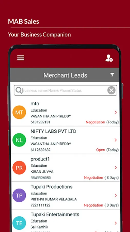 MAB Sales is a simple & easy to use merchant onboarding solution that lets merchants to be onboarded very easily and enable them to use Point of Sale(POS) services. Its light weight and security features helps merchants to be onboarded within minutes. Follow the merchant entire journey and assist him in case of any issues. No more hassles of lengthy paperwork . Easily upload the merchant KYC in digitized form for superfast onboarding