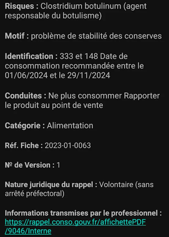 It is based on official information provided by the government via the data available on the Rappel Conso website: https://rappel.conso.gouv.fr/