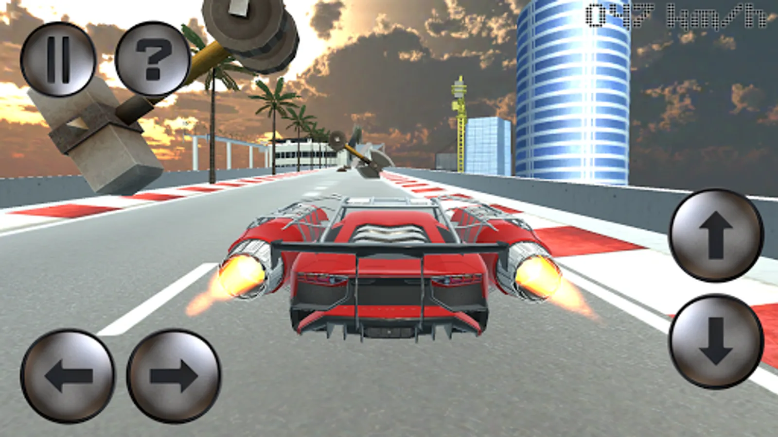 Jet Car - Mega Jumping Stunts is an innovative adrenaline fueled, action packed, 3D car racing, driving and jumping game. The car physics is on an extreme level: crashes, jumps, drifts and lots of other fun racing car tricks. The level environment is a simulation of a flooded city with high-rise buildings. To complete each level you need to make extreme jumps from rooftop to rooftop in order to find all fuel canisters. You can race your friends in multiplayer mode or just jump for fun.