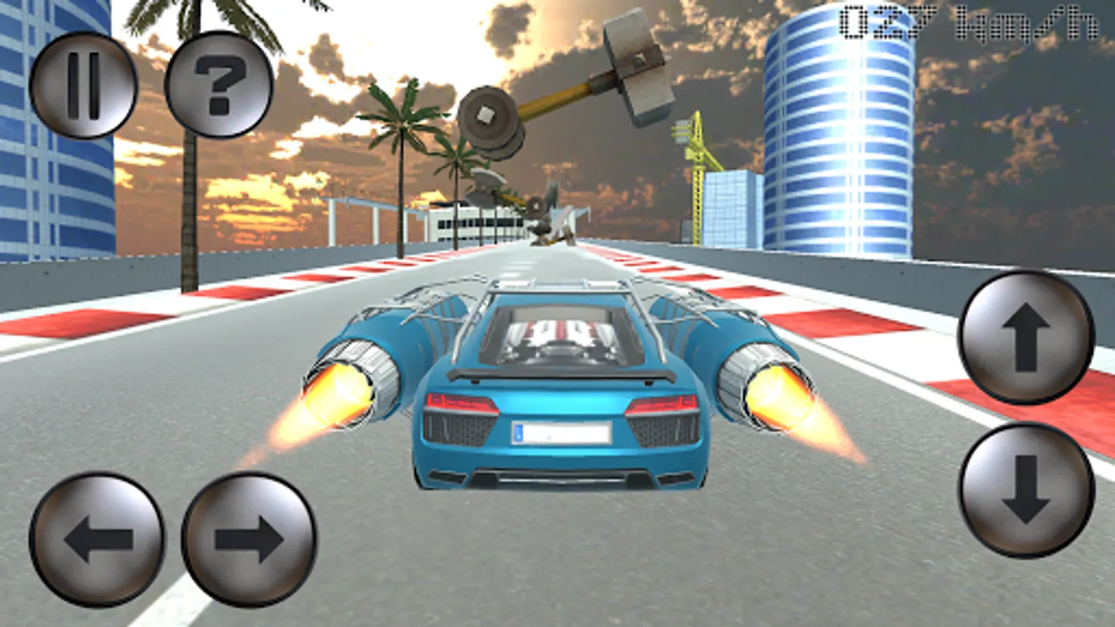Drive your jet car in the stunts and obstacles of the open free mode! Will you climb the mega ramp?