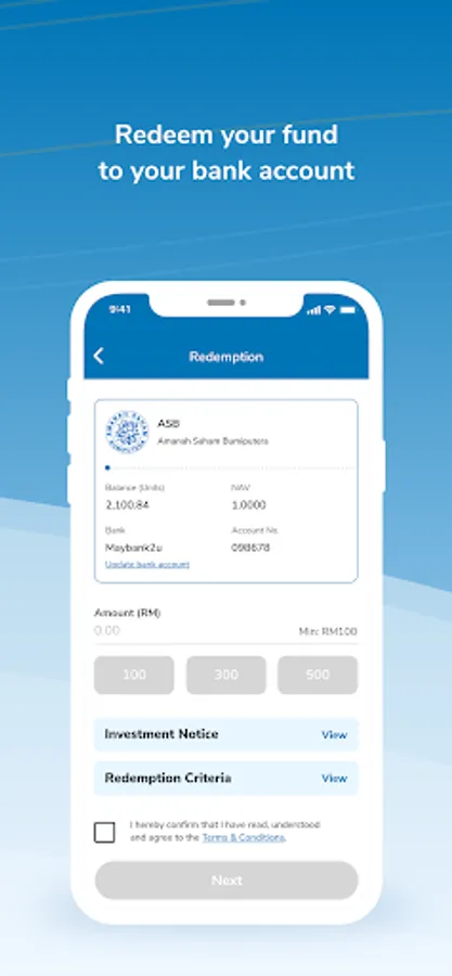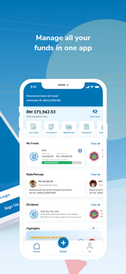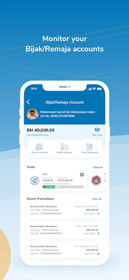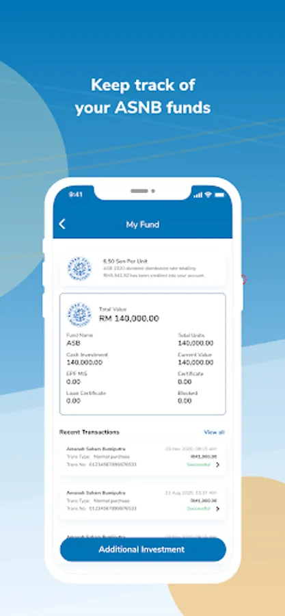The myASNB Mobile App is the official mobile app by Amanah Saham Nasional Berhad, a wholly-owned subsidiary of Permodalan Nasional Berhad that allows its users to safely and conveniently view their ASNB investment portfolio and perform additional investments on their mobile/tablet from anywhere, anytime.