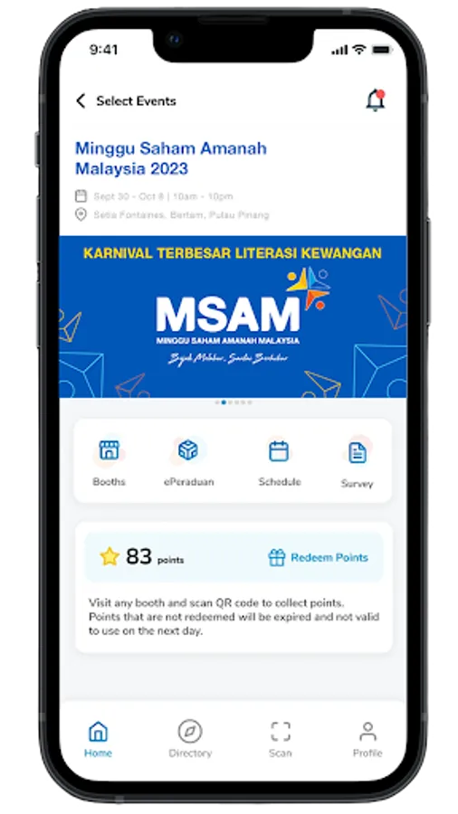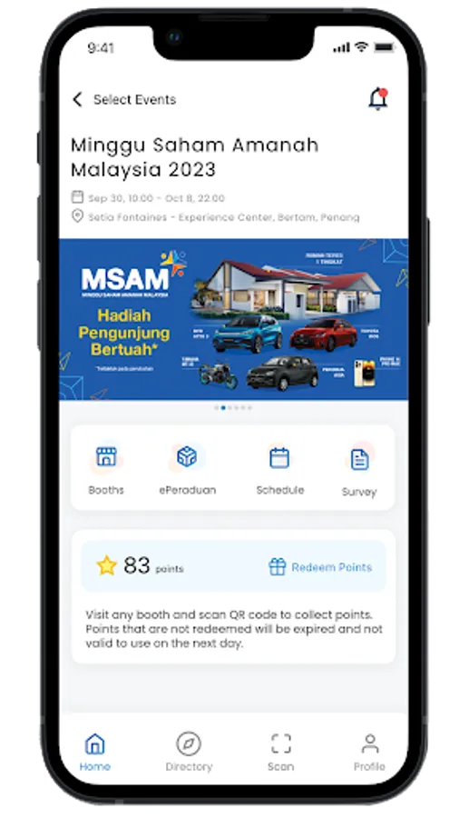 PNB Events App covers most major events held by the Permodalan Nasional Berhad (PNB) Group. The app features on-the-go aspects such as online registration, event schedules, games, event map, as well as push notifications. It will enhance users’ communication experience through a digital-friendly environment.