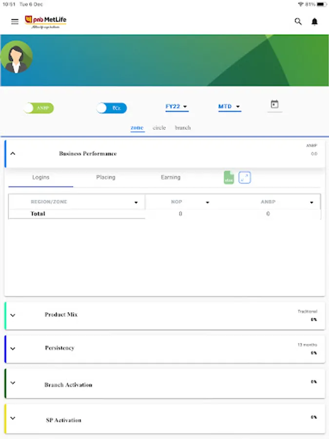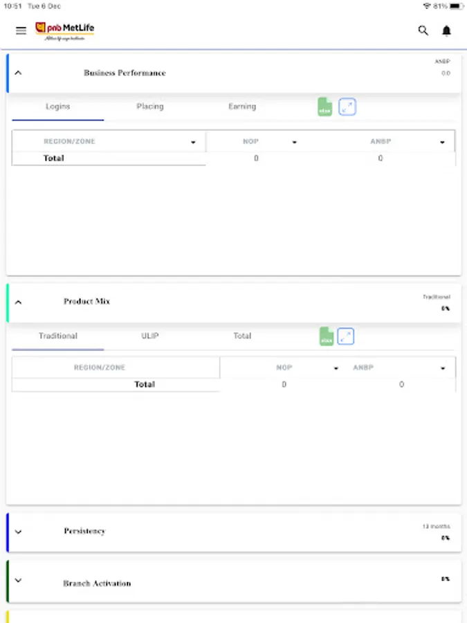 PNB Metlife Dashboard is designed to give quick access to the PNB team current business vectors. The dashboards showcase realtime data for the logins, placing, persistency and activation for the distribution. This is to enable the distribution take informed decisions in advance to streamline the business initiatives.