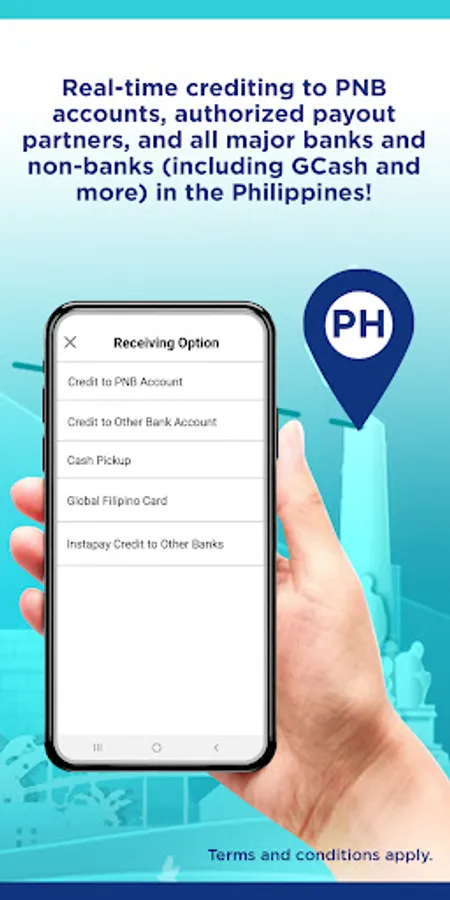 Let your beneficiaries in the Philippines receive their remittance in real-time when credited to a PNB account and Other Bank and E-Money Issuers (including GCash and more)* or when claimed from any PNB branch or Pay-out partners in over 7,000 locations nationwide.