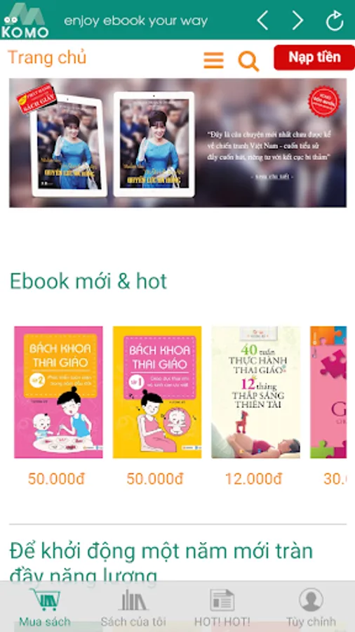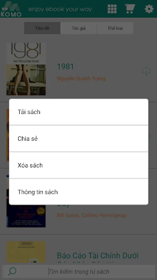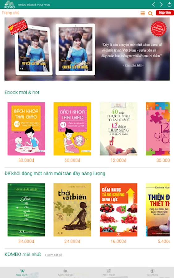 KOMO Reader is an application supporting users to read electronic books from the KOMO store (http://komo.vn). KOMO + brings an interesting reading experience with many advanced features and a user-friendly interface. Readers can also bookmark, add notes, highlight, change fonts and change the page background for easy reading.