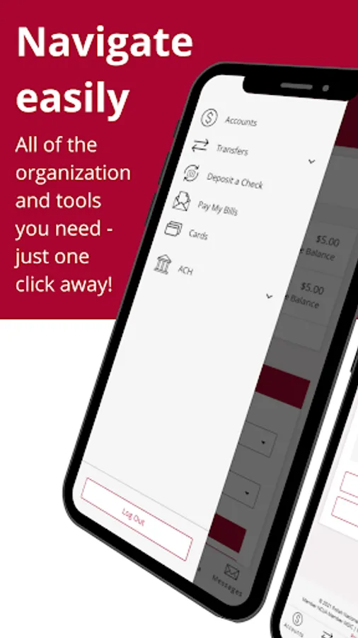 Easily access all of your accounts and features right at your fingertips with our mobile app. Manage your accounts, deposit checks, make transfers, pay bills and more!