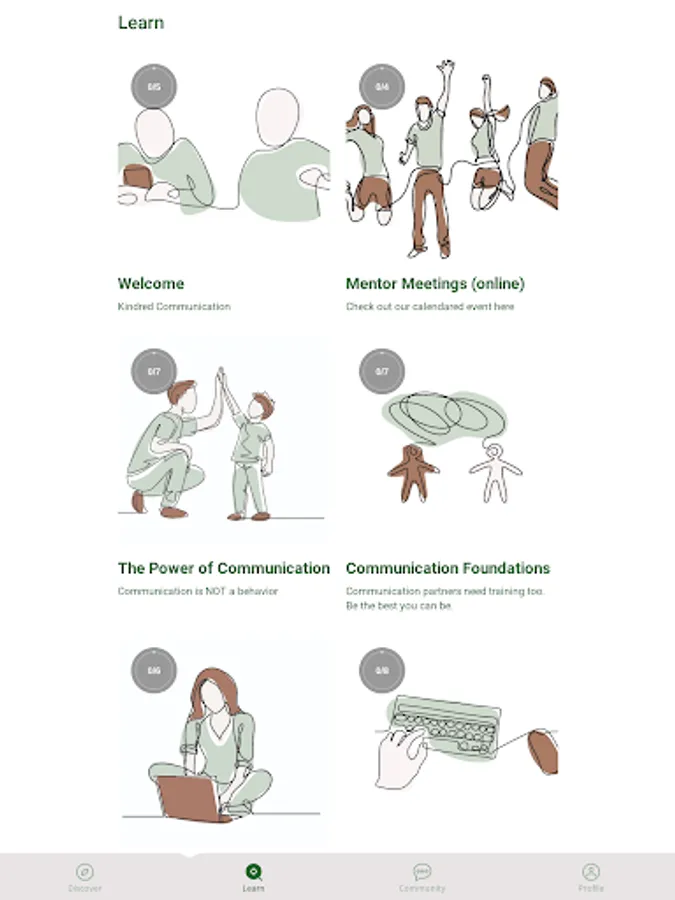 The GoKindred Agency app is designed to meet the training needs of agencies supporting individuals with developmental disabilities and autistic individuals. We have on demand training for each of your staff to learn when they need to, from wherever they are. Learn from experts with over 30 years of professional experience how to support your consumers to be the person at the center of their day. Your staff will have opportunities to connect with professionals through live Q & A sessions as well as access to downloadable talking points to help your teams build skills together. Your agency staff will have all of this information at your fingertips whenever they need it. We are working to build a community of support people who are informed and able to support the communication needs of those with complex communication needs.