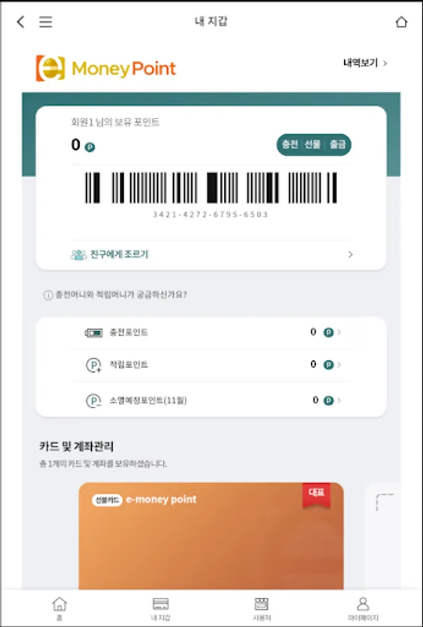 Users can send and request e-money points charged to other users through the payment method, and the points exchanged in this way can be used immediately after receipt.