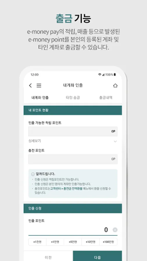 You can withdraw e-money points generated through accumulation, sales, etc. to your registered account or to someone else's account.