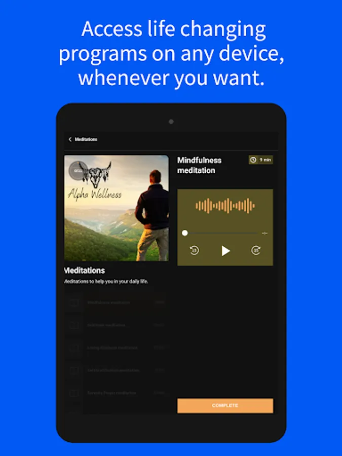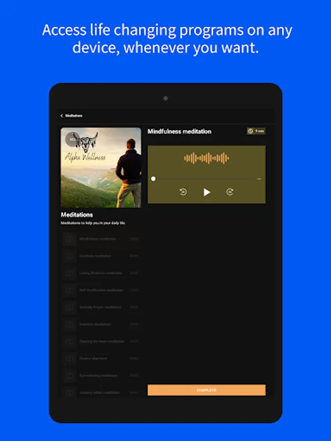 Overcoming mental health shouldn't be hard or an impossible task. Overcoming mental health is an ongoing process and one which needs to be practiced daily, with the Alpha Wellness app you will be able to put our daily tasks into action wherever you go.