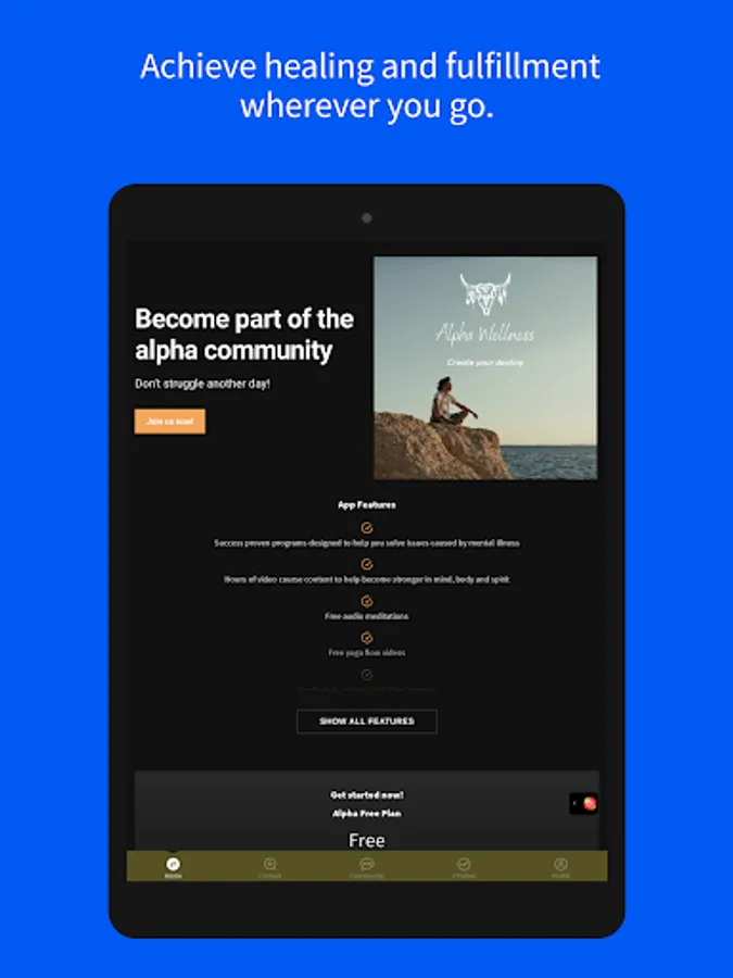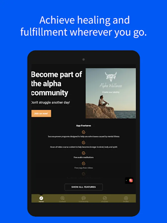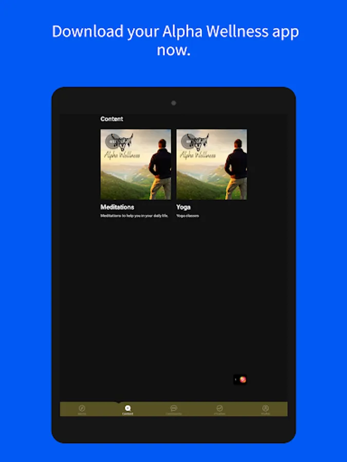 Alpha Wellness is your very own solution based app, designed to help men overcome issues caused by mental illness and addiction. The content and information created is designed to help connect within and become stronger in mind, body and spirit.