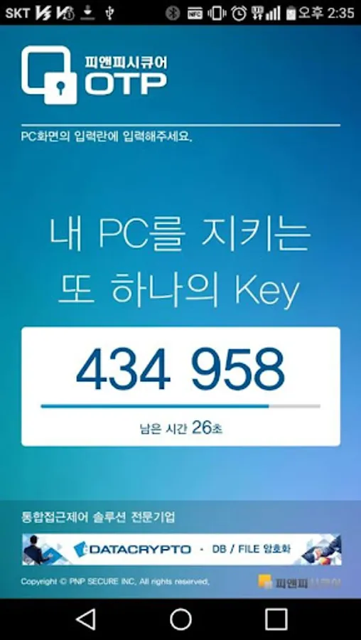 DBSAFER DESK OTP allows secure login through a one-time password. The one-time password using the registered key can be issued offline even when external data communication is not available, providing a secure login service even when external communication is disconnected.