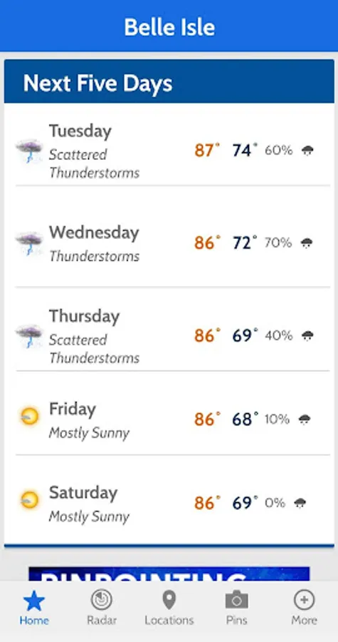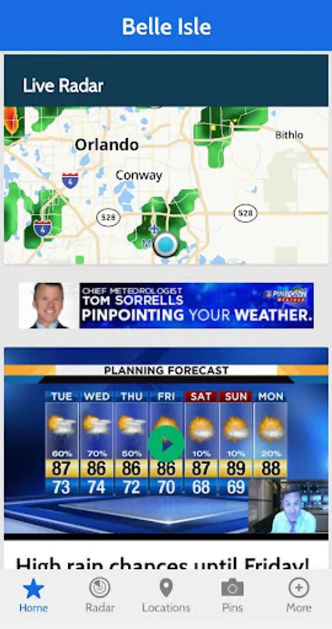 Stay ahead of the storm and on top of weather where you live with The News 6 Pinpoint Weather app. It has everything you need to prepare for your day, your week and avoid those daily Central Florida storms!