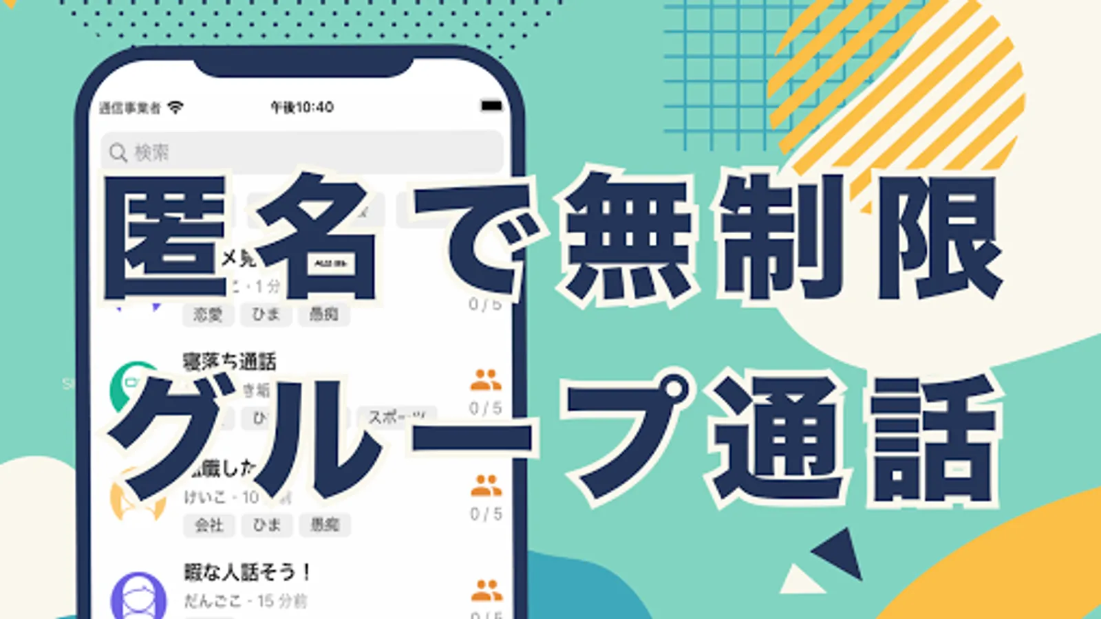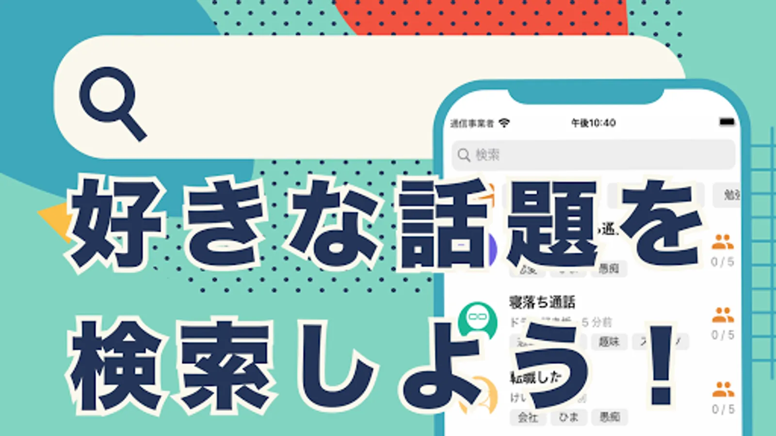 ・気になるトピックで検索して通話相手が探せる!