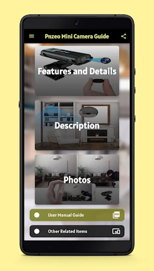 Content of pnzeo mini camera guide app :-