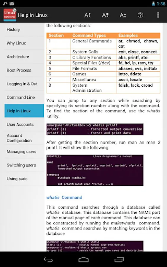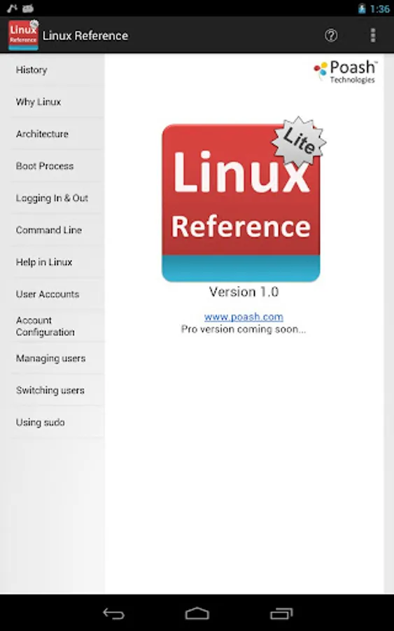 (Pro version is available here : https://play.google.com/store/apps/details?id=com.poash.linuxreferencepro)