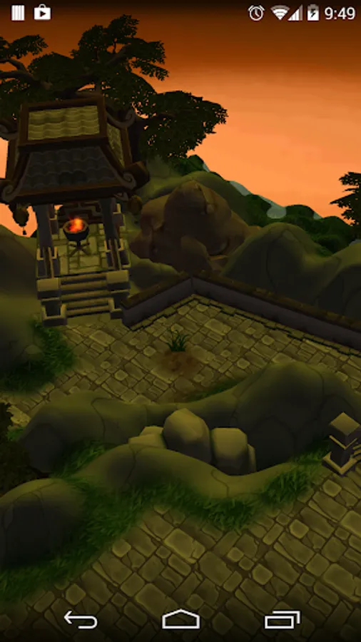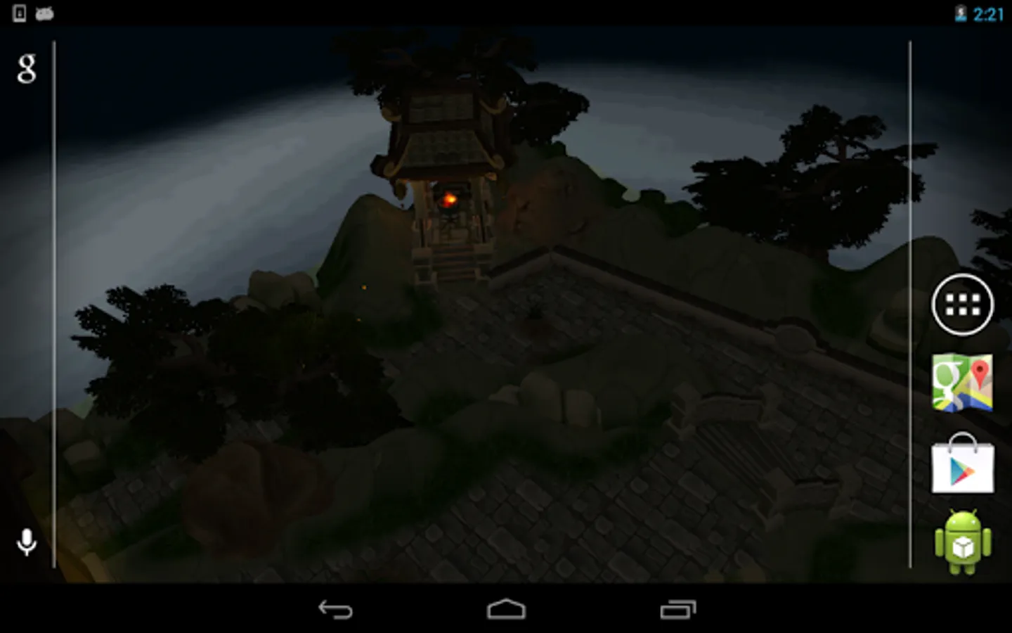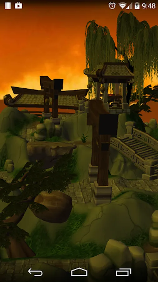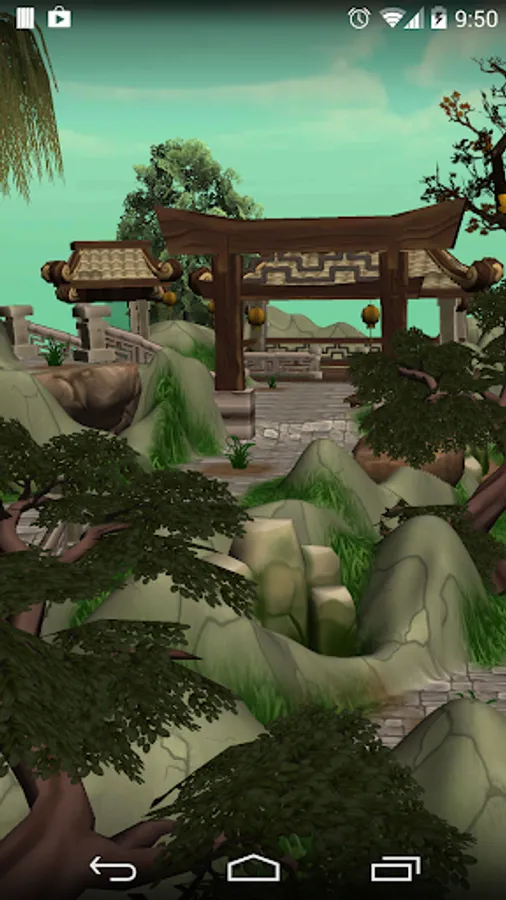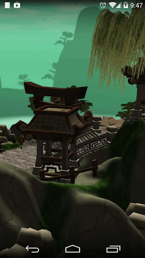 Gaze on the awesome graphics of the 3D Mystic Temple. See the wonderful view of the mountain at different times of the day. See the fireflies and the lamps at night. Customize the entire scene with lights, fog, or choose different angles of the camera for a different experience. Choose the camera speed or configure the frame rate to prevent battery drain.