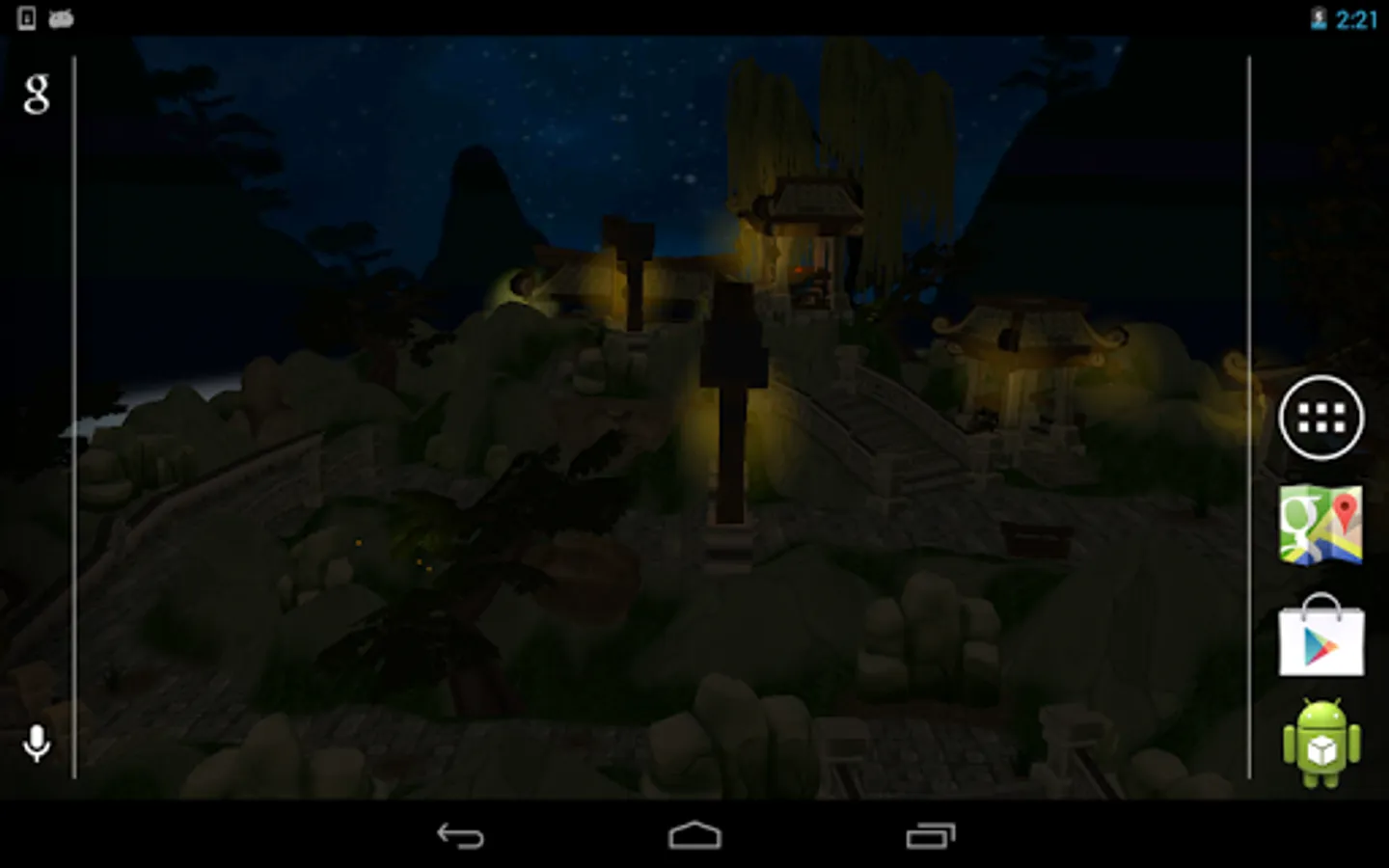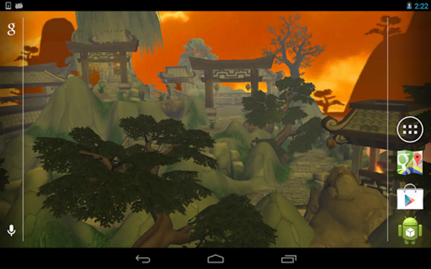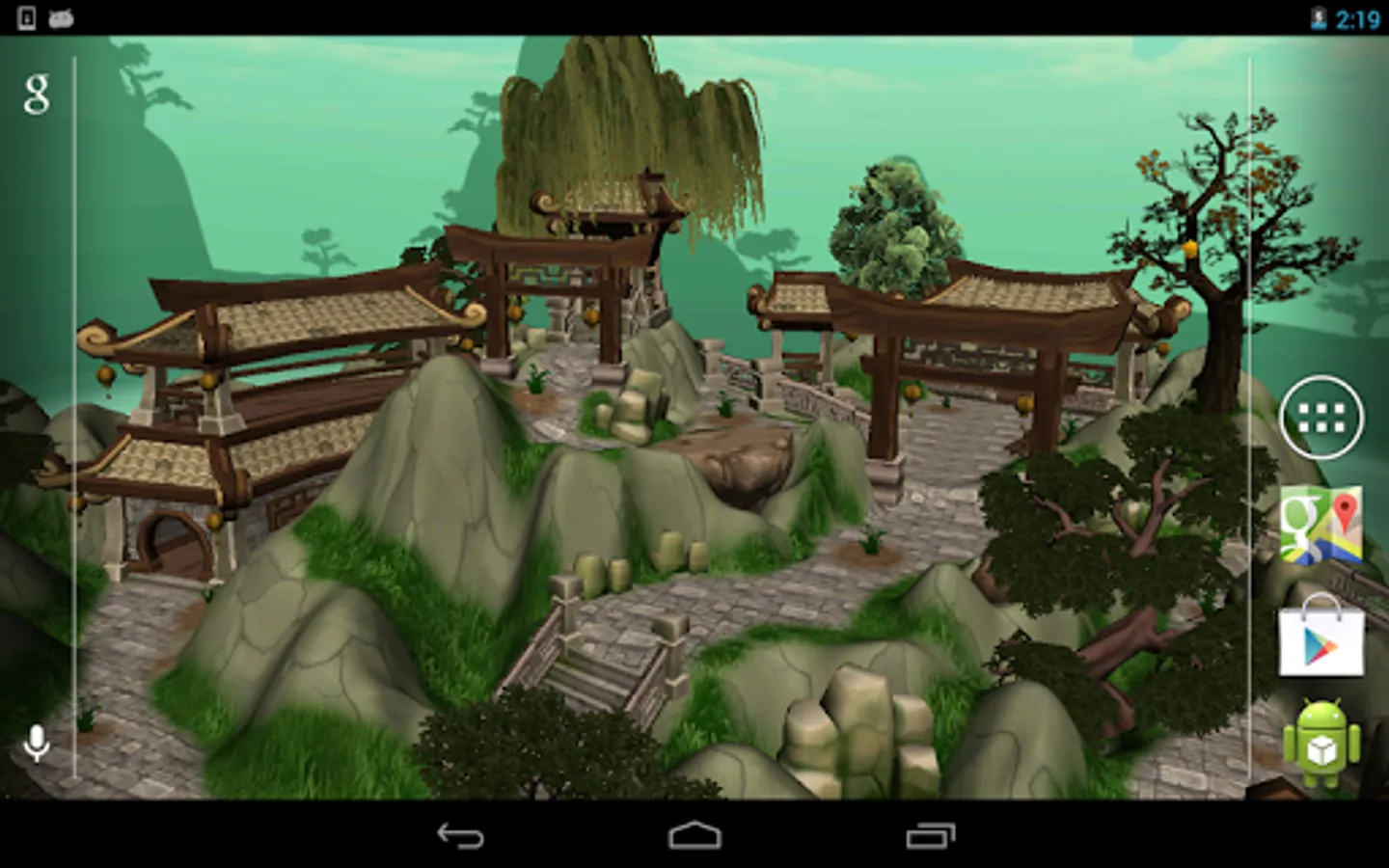 Gaze on the awesome graphics of the 3D Mystic Temple. See the wonderful view of the mountain at different times of the day. See the fireflies and the lamps at night. Customize the entire scene with lights, fog, or choose different angles of the camera for a different experience. Choose the camera speed or configure the frame rate to prevent battery drain.