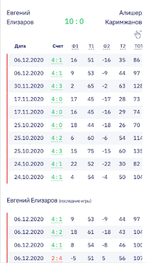 You no longer need to count handicaps and totals in your head. The app will do it for you. It is enough to enter the names of the two players of interest. The service database contains over 3500 athletes.