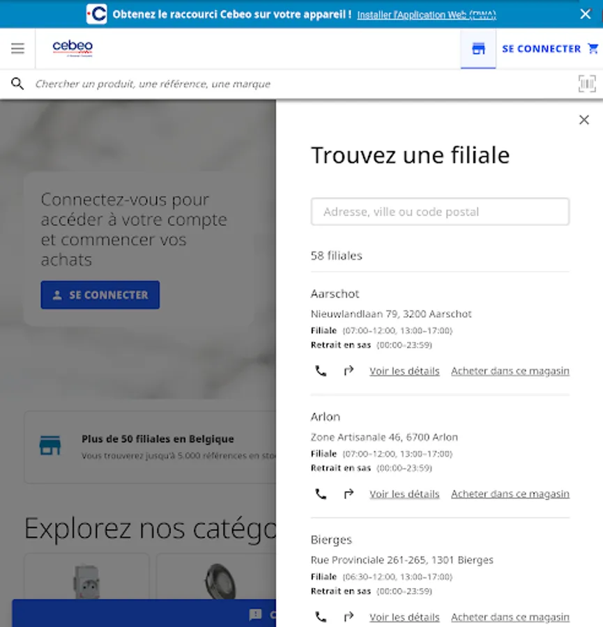 myCebeo is Cebeo's new app. From this new application you will be able to: consult the articles, create and manage several shopping carts, place your orders in a 100% secure way, consult the history of your orders, access your invoices... New features and improvements are regularly added.