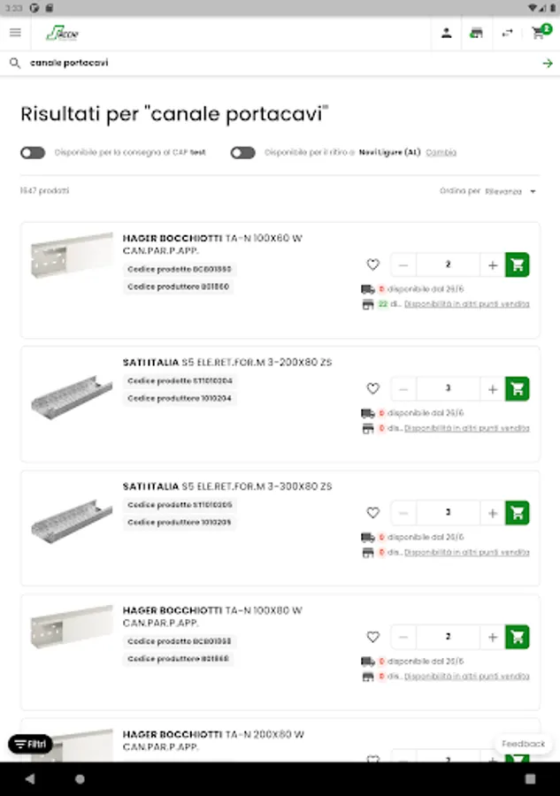 With Sacchi Mobile, active on smartphones and tablets, you have a multitude of functions: you can check product availability, check your personalized prices, create a shopping cart with the products you are interested in and proceed with the order or request a quote which you can then you can confirm directly in the app!