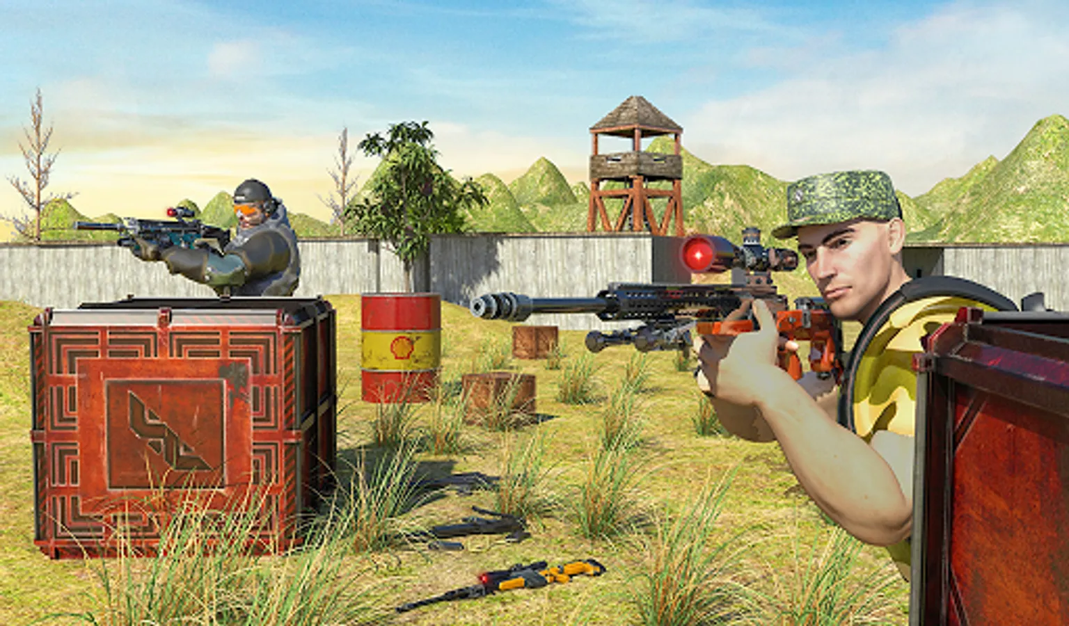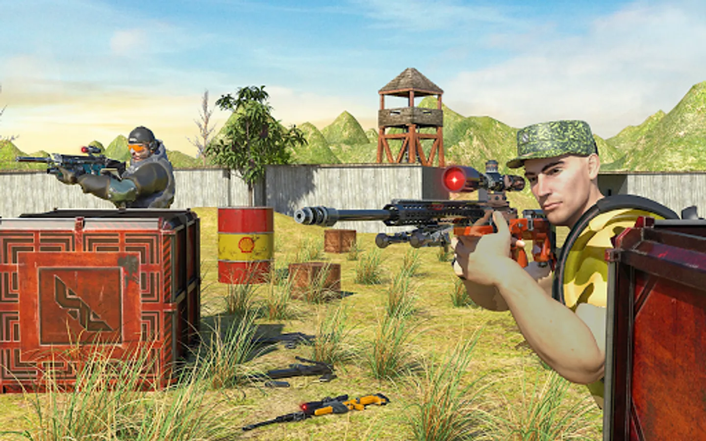 Kill all enemies and rescue commandos. You, as a american sniper assassin, go for shooting as a first person shooter for the survival of squad commando shooting and team shooting, war games where survival is the only way to victory. Your training as riflemen is to be delivered now. It is real time to enjoy headshots. Fight sniper missions against your enemies in the realistic battlefield environment. As a top shooters to find the gangsters hidden in strategic locations use assault rifles to hunt your enemy in different parts of the combat zone and become the best hero of the sniper! As a top military commando use your pro gaming battle skills to achieve your mission of thrilling stealth and fps war action! Use special stealth war and striking tactics as a legendary military spy, to enter in enemy area. In battleground survival free fps and shooting game kill the enemies and pick up health and cash.