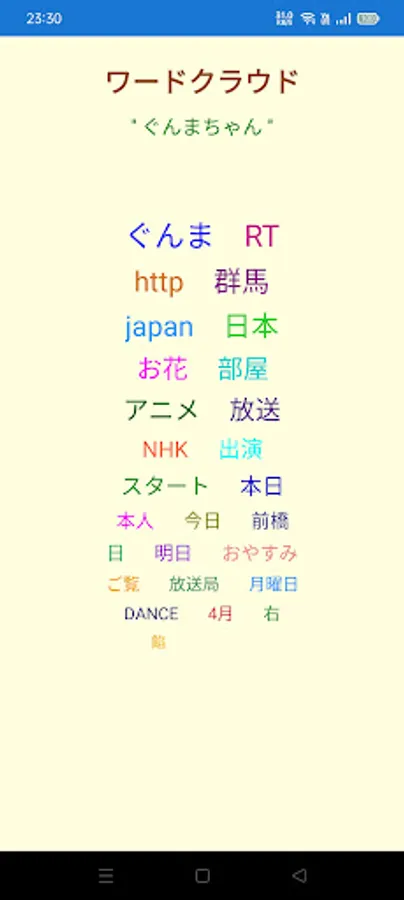 The latest tweets containing the keyword you want to search are collected, their morphological analysis is performed, the words that appear frequently are sorted, and they are displayed as a word cloud.
