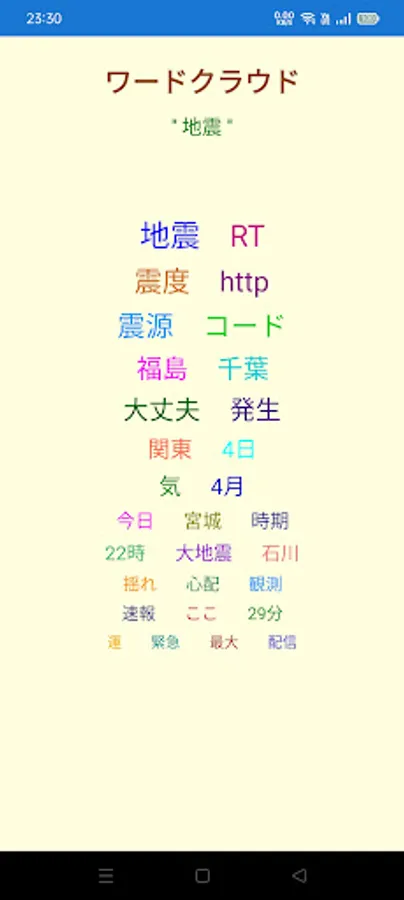 Example 2) If you feel the shaking of an earthquake, you can immediately get a bird's-eye view of when and where it happened by displaying the word cloud with the keyword "earthquake".