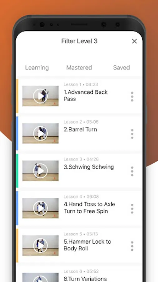 Users can organize their videos into 3 categories: Learning, Mastered, and Downloaded.