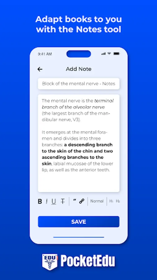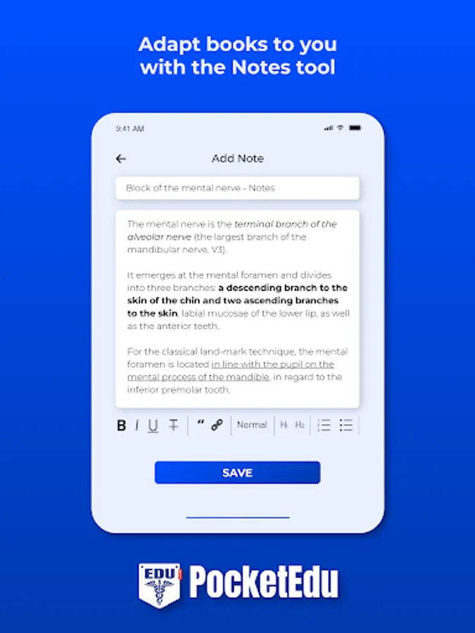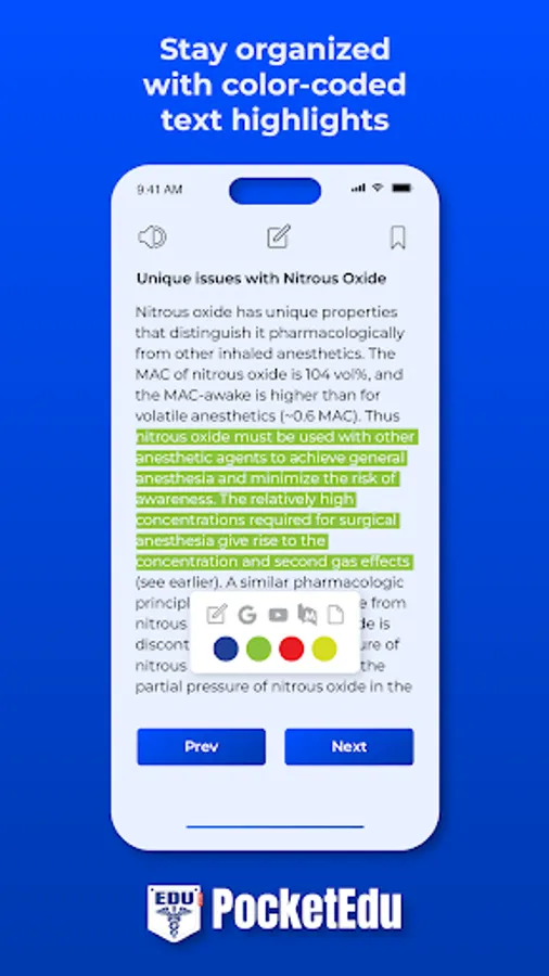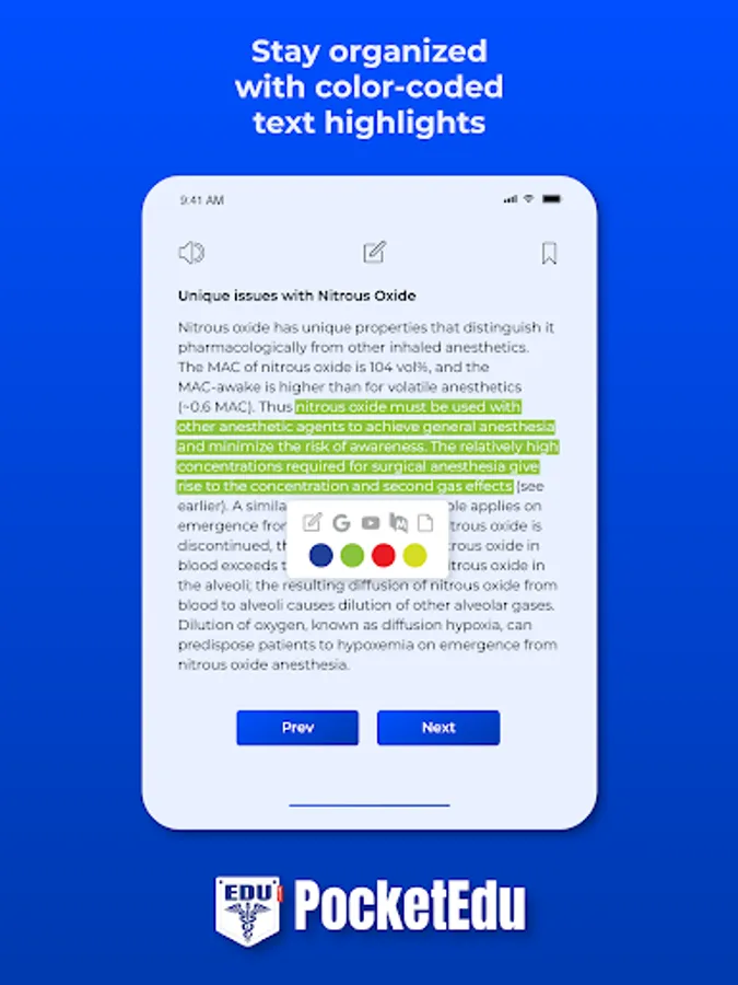 Keeping bulky, outdated books sitting around becomes a thing of the past with PocketEdu. Each new edition of the books available on PocketEDU is added as it comes out. Access standardized medical content from anywhere in the world, and personalize that content to best suit your study needs.