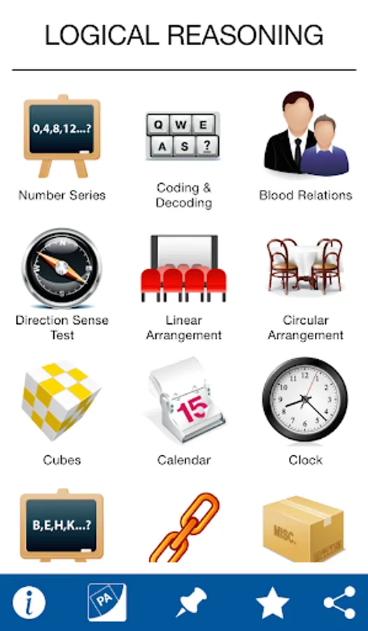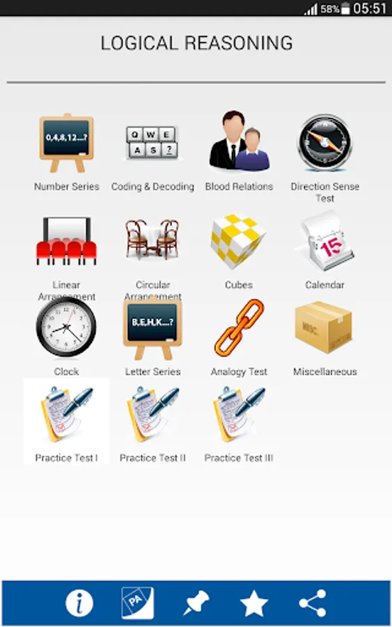 A collection of 1800+ logical aptitude questions frequently asked in competitive examinations and placement papers. It is designed as a preparation tool for job aspirants and those waiting to crack entrance examinations like CAT, XAT, MAT, NTSE, UPSC and various bank exams. This app sharpens your IQ, tests your aptitude skills and enriches your knowledge.