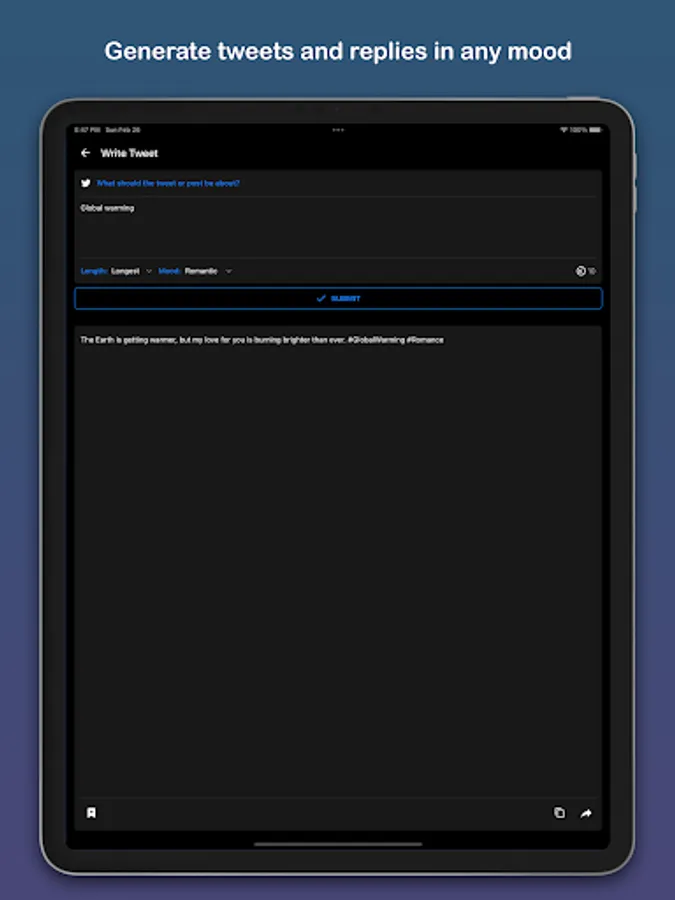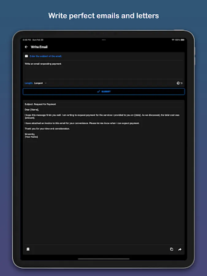 Write essays, emails, stories, code in any language, captions, hashtags, promotional text, song, poem, joke, quotes, etc.