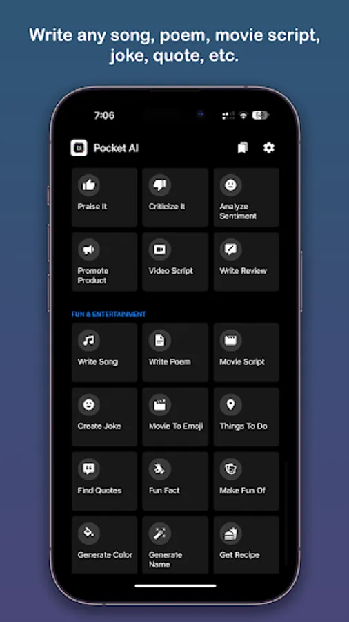 Meet PocketAI, the ultimate AI assistant app powered by GPT-4, state-of-the-art natural language processing technologies developed by OpenAI. PocketAI can respond to different questions and perform multiple tasks. Whether you are a student who needs to write a creative essay, or entrepreneur who needs a business idea or logo, or an artist looking for images & inspiration, the PocketAI app is right for you!