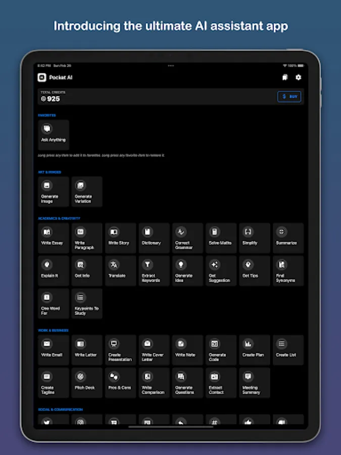 Purchase in-app credits to perform any tasks.