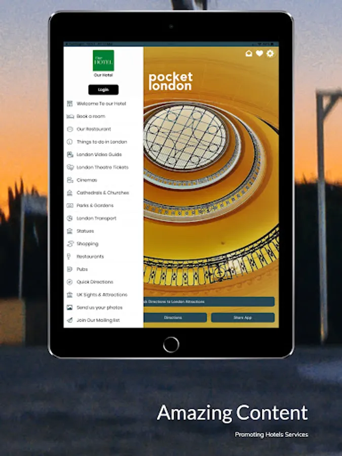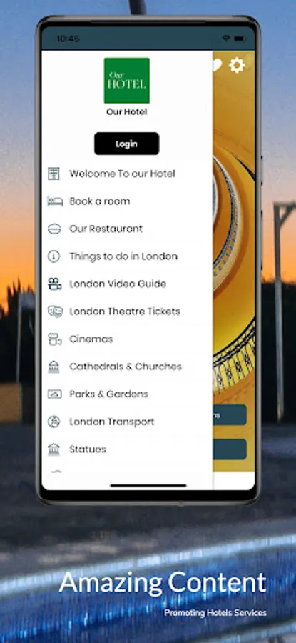 Our Hotel App allows you to promote all your hotel services, from Booking rooms to restaurant and room service orders.