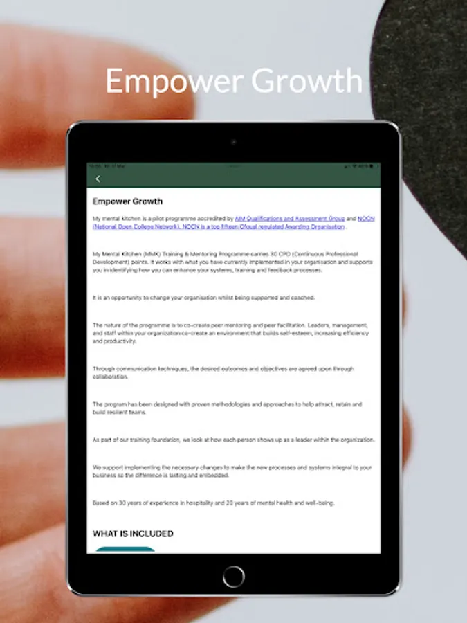 My mental kitchen is a pilot programme accredited by AIM Qualifications and Assessment Group. It carries 30 CPD (Continuous Professional Development) points. It works with what you have currently implemented in your organisation and supports you in identifying how you can enhance your systems, training and feedback processes.