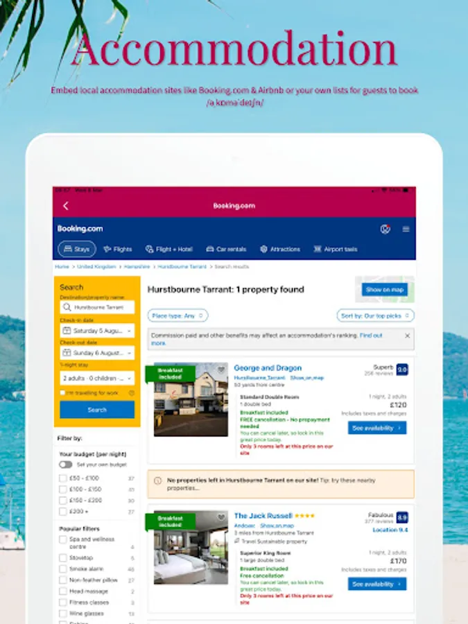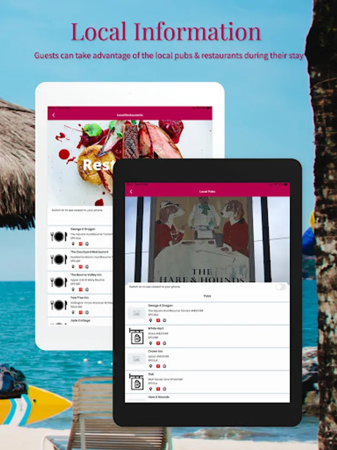 Keep guests informed about restaurants and pubs and include other built-in datasets.