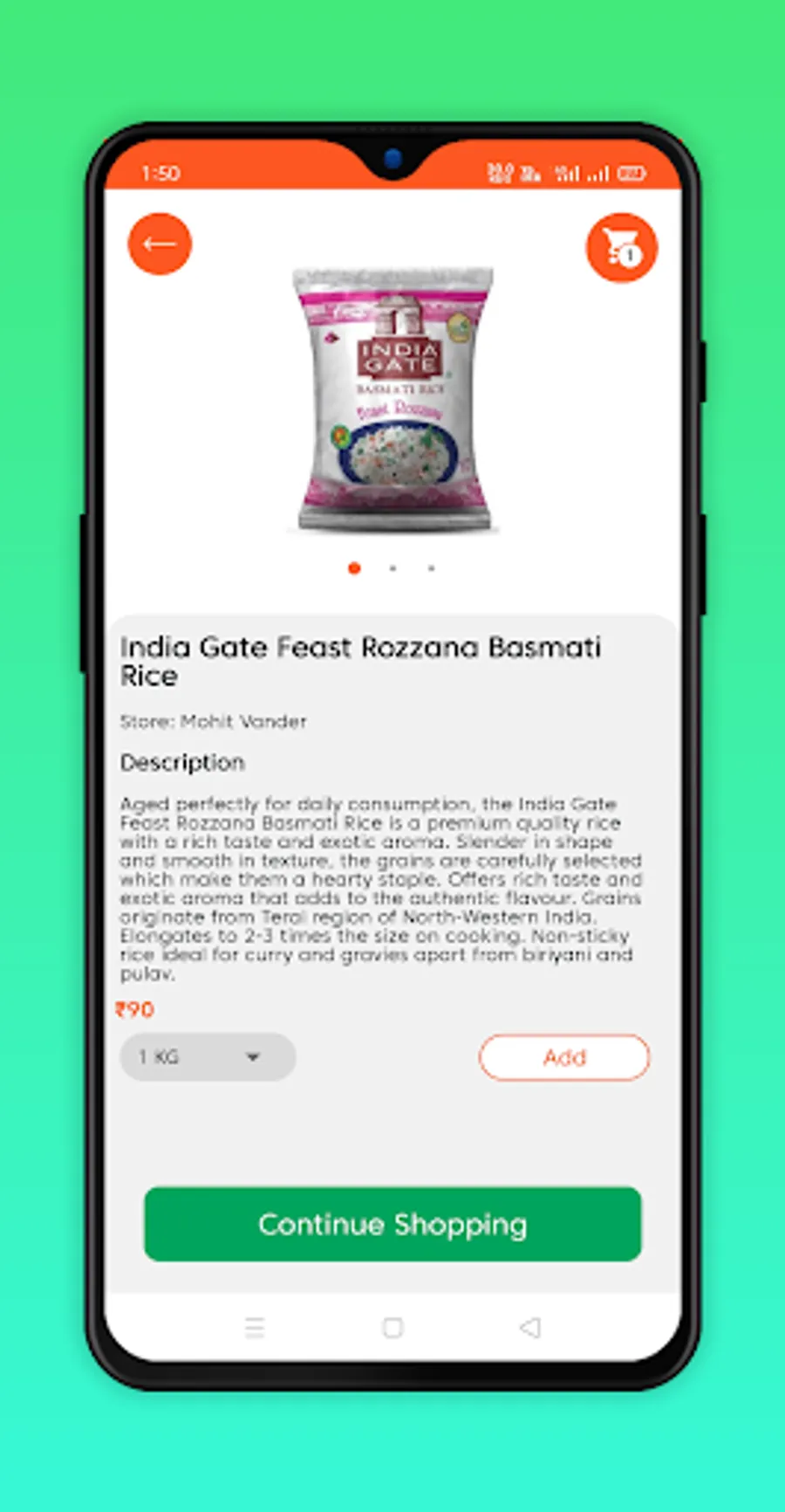 Order variety of products with just a tap - fresh fruits & vegetables, spices, eggs, bread, cold drinks, shampoos, soaps, body wash, cooking oil, ghee, atta, rice, chocolates, biscuits, noodles, pet food, diapers, other organic and gourmet products from your nearby stores.