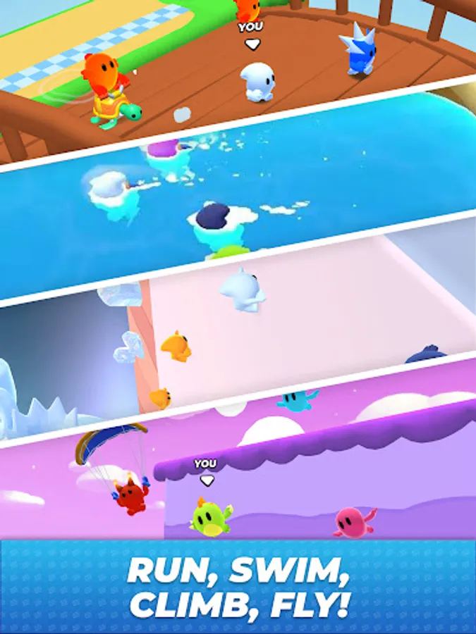 Running shoes, fins, or pick? Choose the best gadget to give you an edge during the race! Open new chests every day and unlock some legendary gadgets like the Eagle or the Cheetah!