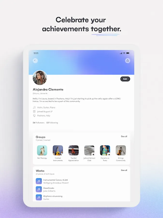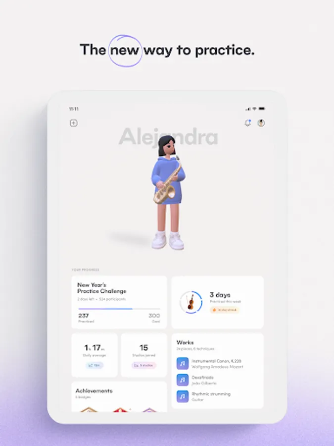 • Get more insight into your music journey. Set practice reminders and track your progress on pieces and techniques.