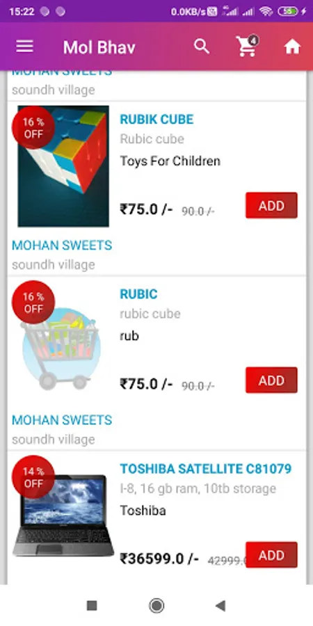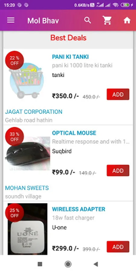 How it Works: Shopkeeper Register as seller on the MolBhav App and add their products .Users search for their needy product or their known shop keeper .User will add products to his /her cart and will place order. Once user has placed his/her order then user can pick his/her packed order from shop or can ask shopkeeper to deliver package at home..