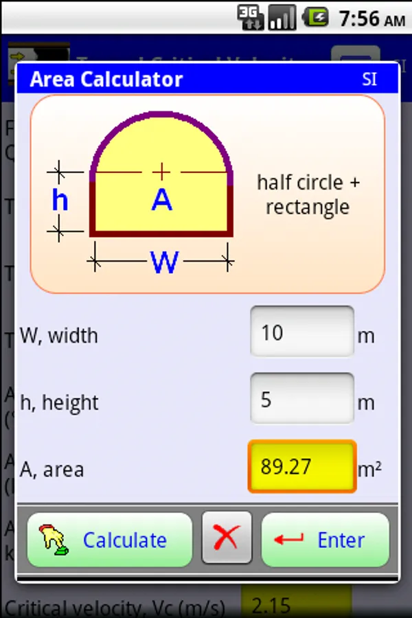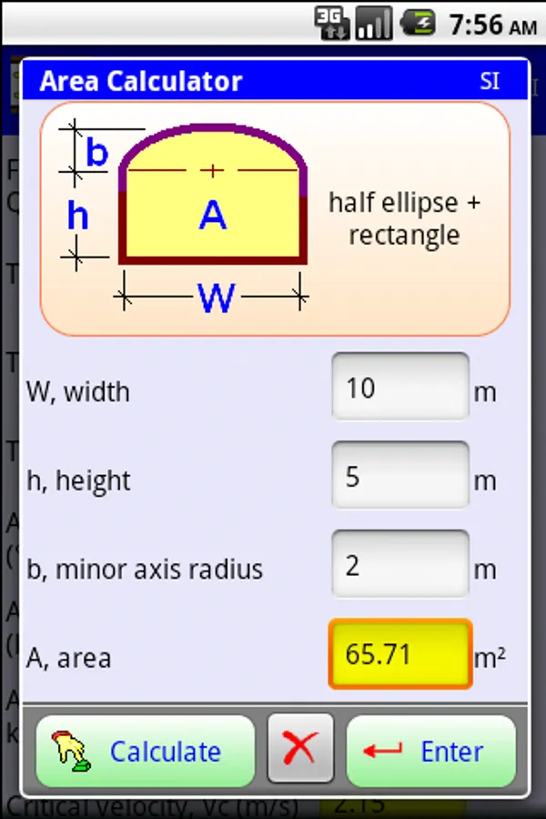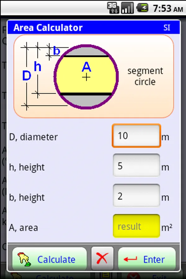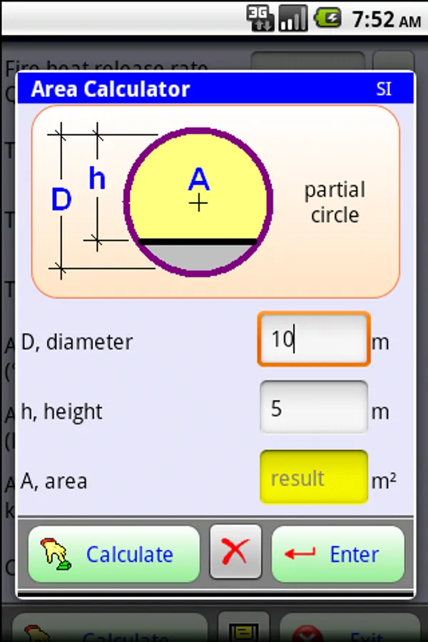 -built-in customized area calculator. Options available are Partial circle, Segment circle, Half circle + rectangle, Half ellipse + rectangle, and Rectangle.