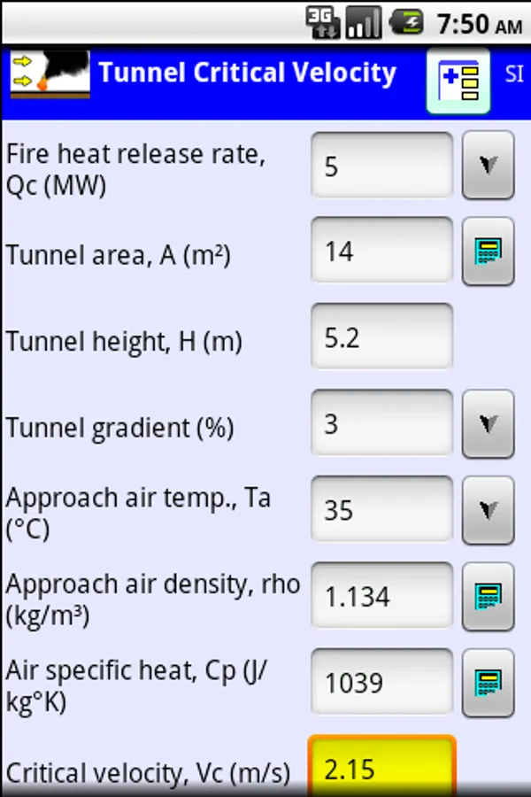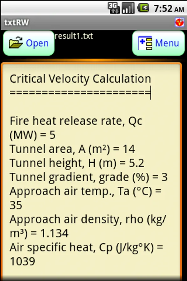 a Tunnel Critical Velocity calculation program employs the most commonly used model developed by Kennedy et al. to determine the ciritcal air velocity in tunnel ventilation for smoke control.
