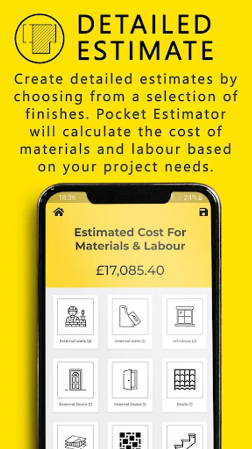 Pocket Estimator allows you to quickly calculate anticipated costs based on industry standard rates for labour and materials. Boasting three key features to meet all your building estimation needs;