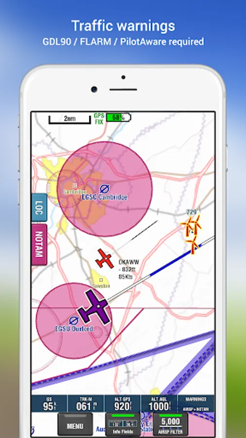 EasyVFR Basic UK (previously: AirspaceAvoid) has been succeeded by the new EasyVFR 4 app. The new EasyVFR 4 app provides both beginner and advanced pilots in all European countries with the easiest, clearest and most convenient moving map possible on their mobile devices. The EasyVFR 4 SmartMap has it all: dynamically activated airspaces, live traffic, VFR arrival and departure procedures, obstacles, terrain and clear geographical features. All powered by the most reliable and accurate data providers in the industry.