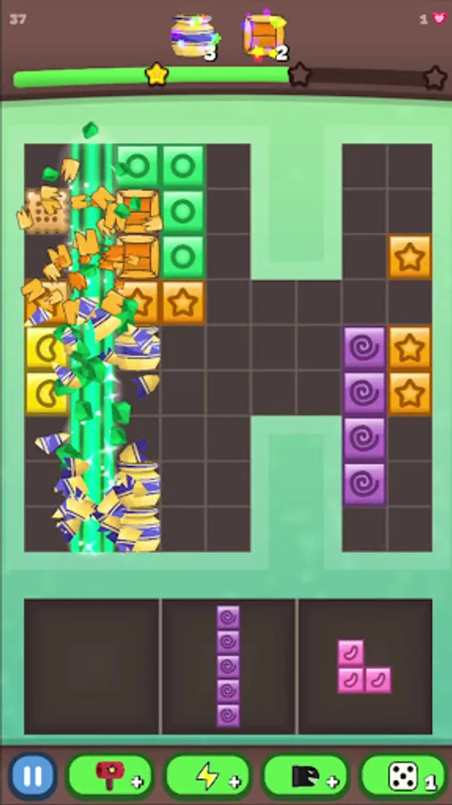 Destroy all obstacles and objects by placing colorful blocks. Collect coins, boosters that give you an advantage. Open chests to get rewards and spin the wheel of fortune every day.