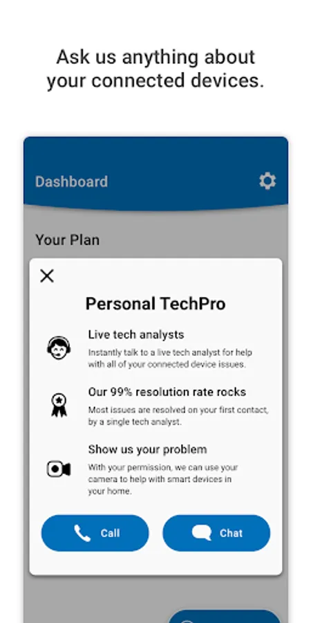 • Connect instantly with our U.S.-based tech pros via call or chat for support of all your connected devices such as smartphones, printers, routers, game consoles, smart TVs, and thermostats.