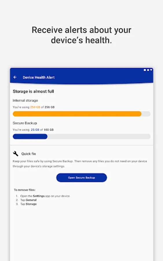 • Stay informed with alerts: You will receive detailed alerts with solutions when device issues have been detected