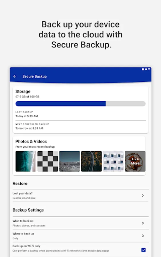 • With UScellular Protect you can securely back up and restore photos, videos, music, documents, and contacts. UScellular Protect provides a solution for syncing, storing, backing up, and restoring content.